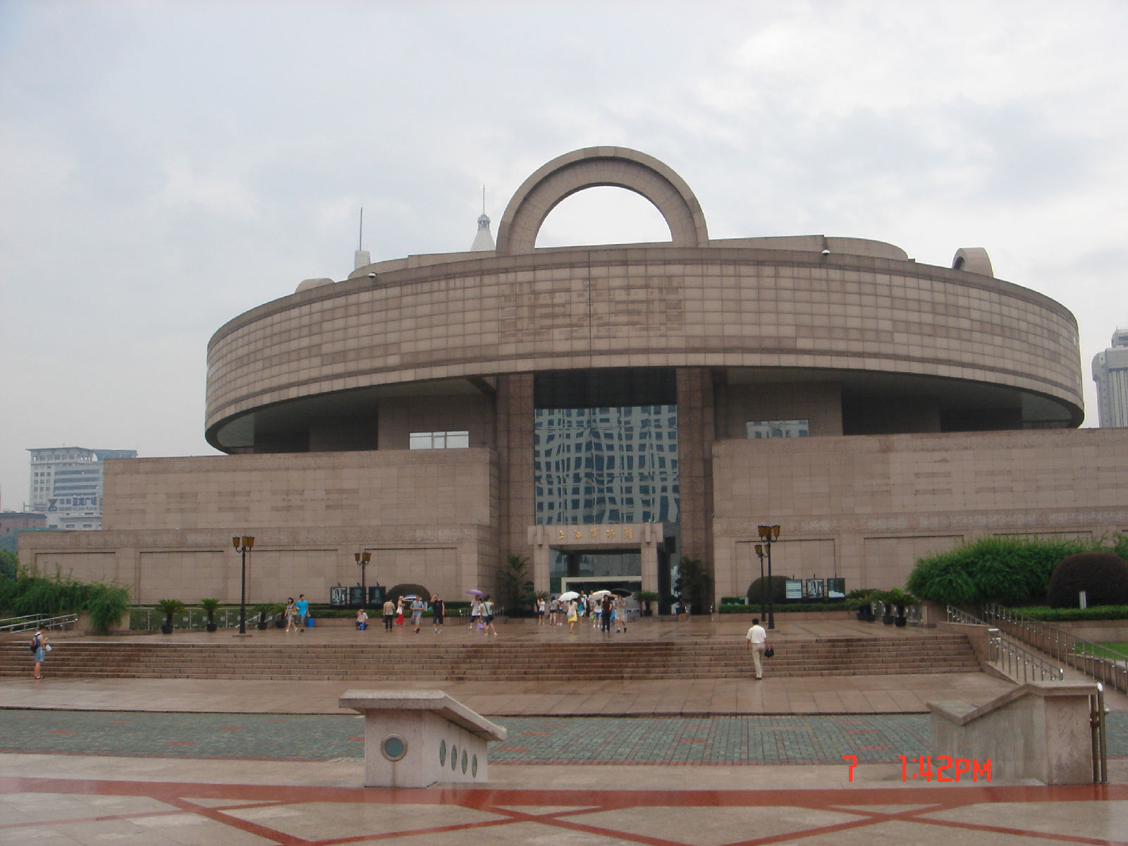 博物館最早的館址是南京路上的上海圖書館,1935年建館,七年后,搬到河南南路的中匯銀行大廈。新館位于市中心人民廣場 南端,占地面積33畝。地下二層,地上五層,地面高度29米,總投資為43億元。于1993年9月開工,1994年9月完成主體結(jié)構(gòu)和外墻貼面裝飾,1995年底正式開館。是一座方體基座與圓形出挑相結(jié)合的建筑,造型具有中國“天圓地方”的寓意。它既有中國傳統(tǒng)建筑之基座、臺階的形意,有園林綠化的東方格調(diào),體現(xiàn)了現(xiàn)代科技和時代精神。從遠(yuǎn)處眺望博物館,圓形屋頂加上拱門的上部弧線,整座建筑猶如一尊中國古代青銅器;若從高處俯視博物館,則屋頂平面猶如一面巨大的漢代規(guī)矩鏡的圖案。到了晚上,中間圓頂13米跨...