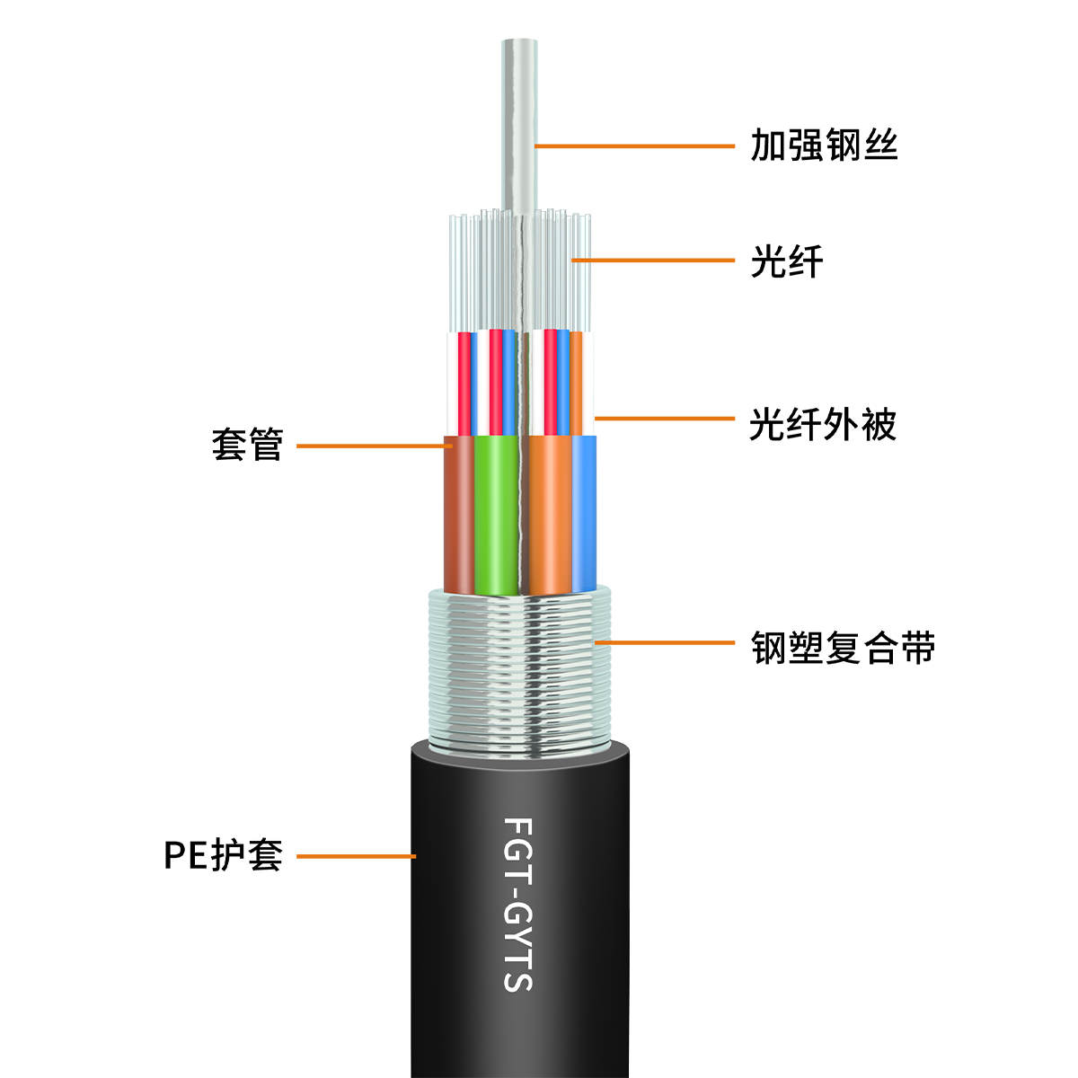 FGT 層絞式系列光纜,也稱GYTS/GYTA光纜,執(zhí)行標(biāo)準(zhǔn):IEC 60793、YD/T 901、ISO/IEC 11801、ANSI/TIA-568.3-D,產(chǎn)品達到國內(nèi)先進水平